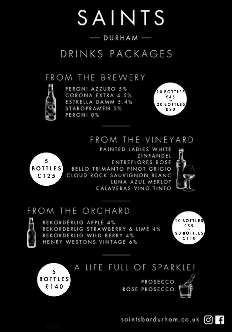Saints Bar Durham is more than just a happy hour bar with a nice view EMAIL SAINTS BAR Riverside, Unit 47, Elvet Bridge, Durham, DH1 3UJ Drinks | Private Hire | What's On | Contact Us